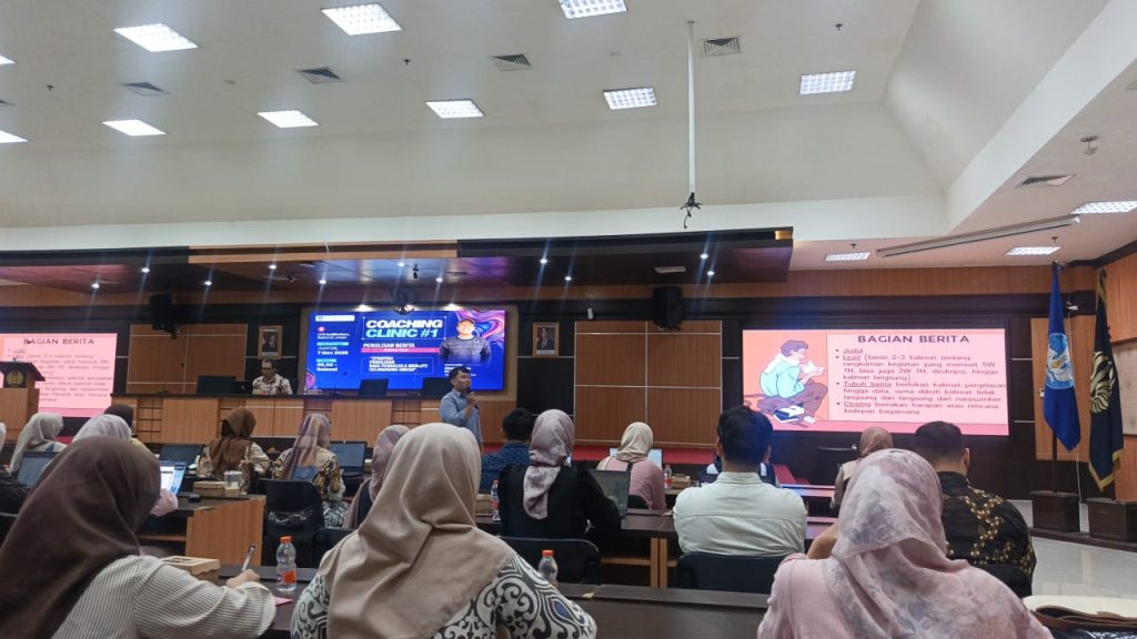 Acara coaching klinik digelar pada hari Jumat, 7 November 2025, bertempat di Auditorium lantai 11, Unesa. Kegiatan ini dibuka secara resmi dengan antusias oleh pimpinan universitas dan menghadirkan narasumber yang kompeten di bidang jurnalistik dan media digital.