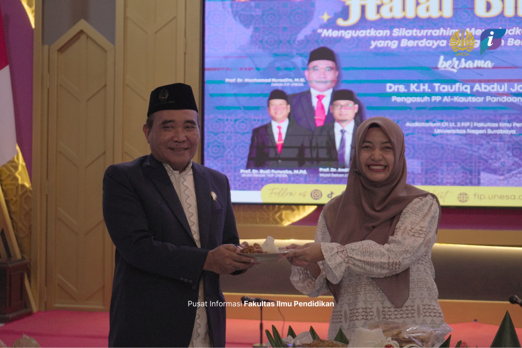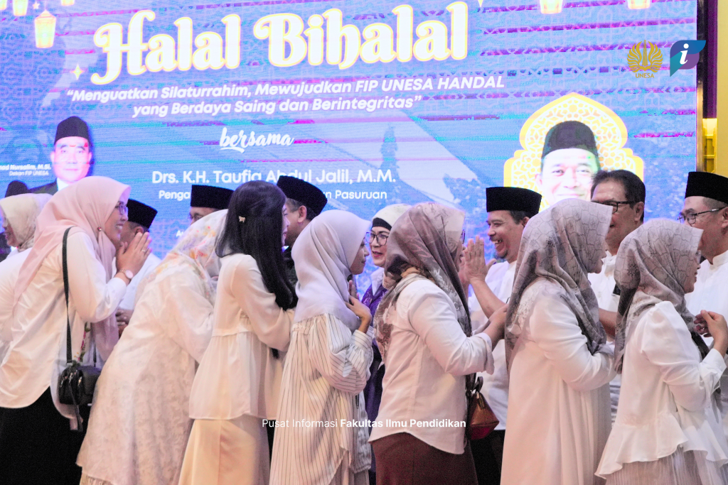 fip.unesa.ac.id, SURABAYA – Sebagai upaya untuk mempererat tali silaturahmi Fakultas Ilmu Pendidikan Universitas Negeri Surabaya (FIP UNESA) melangsungkan Halal Bihalal yang bertempat di gedung O1 lantai 1 dan 2. Pada Kamis, 10 april 2025 yang bertemakan “Menguatkan Silaturahim Mewujudkan FIP UNESA HANDAL yang Berdaya Saing dan Berintegritas”.