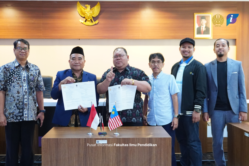 fip.unesa.ac.id, SURABAYA – Fakultas Ilmu Pendidikan Universitas Negeri Surabaya (FIP UNESA) kedatangan tamu dari Fakulti Pengajian Umum dan Pendidikan Lanjutan (FPUL) Universitas Sultan Zainal Abidin (UniSZA), Malaysia, untuk melakukan penandatangan Memorandum of Understanding (MoU). Penandatanganan ini menjadi langkah konkret dalam memperkuat kolaborasi akademik lintas negara, khususnya dalam bidang pendidikan, penelitian, dan pengabdian masyarakat. Kegiatan ini berlangsung pada Jumat, 01 Agustus 2025 dan bertempat di gedung O1 lantai 1.