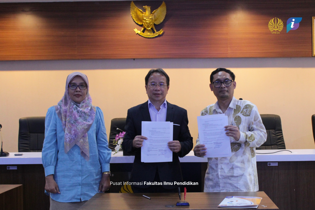 fip.unesa.ac.id, SURABAYA—Teknologi Pendidikan (TP) Fakultas Ilmu Pendidikan Universitas Negeri Surabaya (FIP UNESA) melaksanakan Guest Lecture and MoU Signing dengan tema “Research Trends in Educational Technology”. Kegiatan ini dilaksanakan pada Rabu, 13 Agustus 2025 secara hybrid melalui laman zoom dan di ruang sidang O1 Lt. 1, FIP UNESA.