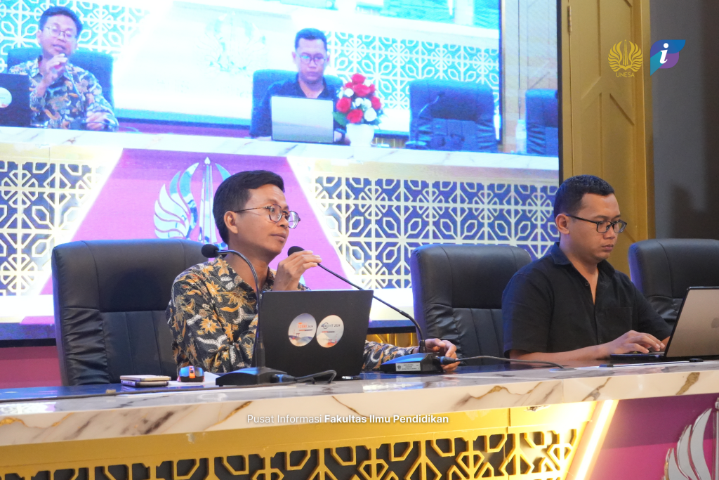 Kegiatan dilanjutkan dengan pemaparan dari Prof. Nadi Suprapto, S.Pd., M.Pd., Ph.D., yang menyoroti capaian publikasi UNESA dan peran penting dosen dalam meningkatkan reputasi universitas di kancah global.
