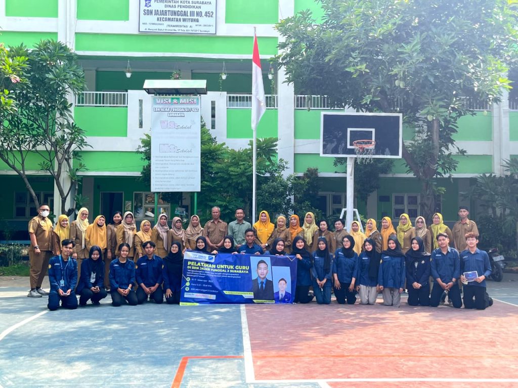 fip.unesa.ac.id, SURABAYA- Mahasiswa Program Studi Teknologi Pendidikan, Fakultas Ilmu Pendidikan (FIP) Universitas Negeri Surabaya (UNESA) menyelenggarakan Pelatihan Pengembangan Modul Ajar Berbasis Game-Based Learning method bagi para guru di SDN Jajar Tunggal 3 Surabaya pada 15–16 Desember 2025. Kegiatan ini merupakan bagian dari upaya mahasiswa untuk berkontribusi secara nyata dalam peningkatan kualitas pembelajaran di sekolah dasar melalui penerapan inovasi pendidikan berbasis teknologi dan pedagogi. Selain menjadi luaran mata kuliah pengelolaan pelatihan, kegiatan yang berupa pelatihan tersebut bertujuan untuk membekali guru dengan pemahaman dan keterampilan dalam merancang modul ajar yang interaktif, kreatif, serta berorientasi pada penguatan kemampuan metakognitif siswa. Adapun mahasiswa yang berpartisipasi dalam pelatihan tersebut yakni:
