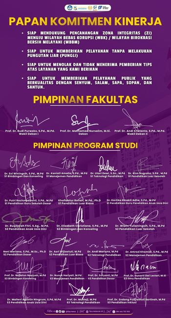 Fakultas Ilmu Pendidikan Universitas Negeri Surabaya berkomitmen untuk memperkuat akuntabilitas kinerja sebagai bagian dari implementasi pembangunan Zona Integritas menuju Wilayah Bebas dari Korupsi (WBK). Penguatan akuntabilitas dilakukan melalui pengelolaan perencanaan kinerja yang terukur, pelaksanaan kegiatan yang selaras dengan target organisasi, serta pelaporan kinerja yang transparan dan dapat dipertanggungjawabkan.