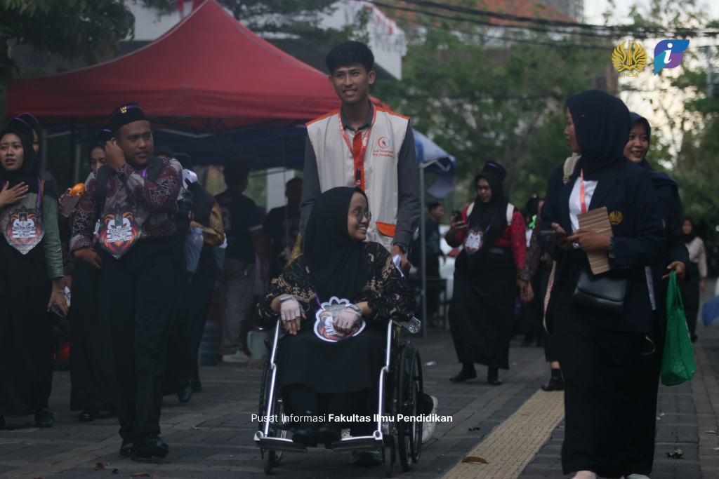 Kegiatan ini juga diikuti oleh mahasiswa disabilitas dari prodi PLB, mulai dari disabilitas netra, daksa, hingga rungu. Raynata Muhammad Alamsyah, mahasiswa disabilitas netra, mengaku terbantu dengan adanya fasilitas ramah disabilitas di FIP UNESA. “FIP sudah memiliki aksesibilitas sesuai kebutuhan teman-teman disabilitas, mulai dari bidang miring, guiding block, hingga braille di setiap pintu ruangan. Itu sangat membantu saya menemukan kelas,” ujarnya. Ia juga berharap dapat mewujudkan cita-citanya melalui PLB UNESA untuk mengubah persepsi masyarakat bahwa disabilitas bukan berarti tidak mampu.