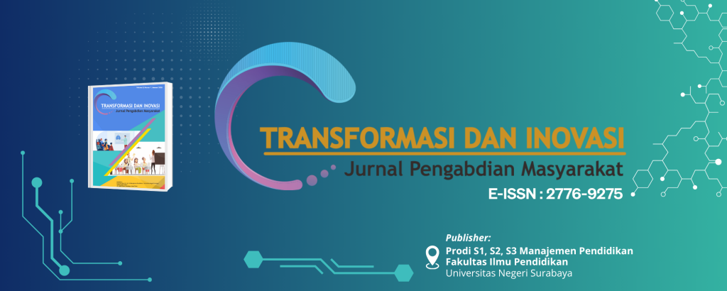 Jurnal Pengabdian Masyarakat Fakultas Ilmu Pendidikan Universitas Negeri Surabaya (Unesa) menghadirkan gebrakan baru dalam publikasi ilmiah di bidang community service. Terbit secara berkala dua kali setahun, jurnal ini mewadahi hasil-hasil pengabdian masyarakat dari beragam bidang manajemen pendidikan dan psikologi, sebagai wujud nyata kontribusi akademisi dalam pengembangan dan pelayanan masyarakat.