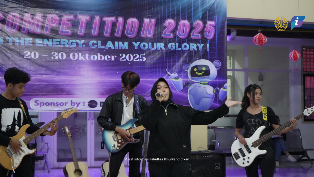 fip.unesa.ac.id, SURABAYA—Alunan musik dari berbagai genre mengiringi gelaran lomba band antarprodi yang menjadi salah satu sorotan utama dalam rangkaian EFA Competition 2025 warnai suasana sore Fakultas Ilmu Pendidikan (FIP) Universitas Negeri Surabaya (UNESA) pada Senin, 27 Oktober 2025, di Pendopo FIP UNESA.