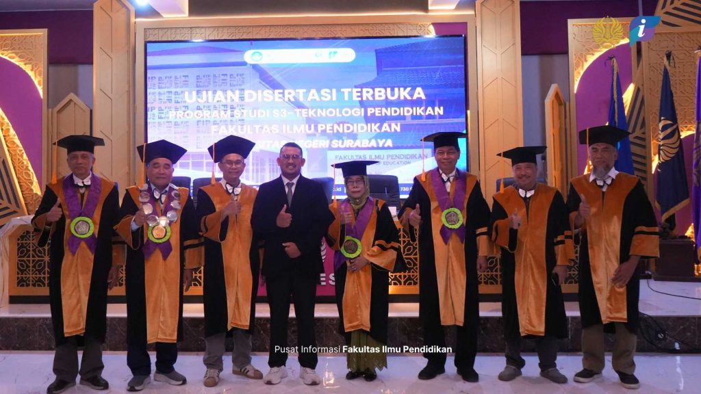 fip.unesa.ac.id SURABAYA — Sidang promosi doktor Fakultas Ilmu Pendidikan Universitas Negeri Surabaya (FIP UNESA) kembali mengukuhkan satu nama baru dalam bidang Teknologi Pendidikan. Kegiatan ini dilaksanakan pada Senin, 23 Februari 2026, yang bertempat di Ruang Sidang FIP, Gedung O1 Lantai 2. Pada sidang tersebut Promovendus mempresentasikan disertasinya dengan judul “Pengembangan Online Project Collaborative Learning (OPCL) untuk Meningkatkan Self-Regulated Learning dan Creativity Mahasiswa Teknologi Pendidikan Universitas Palangka Raya” resmi dinyatakan lulus dengan hasil memuaskan.