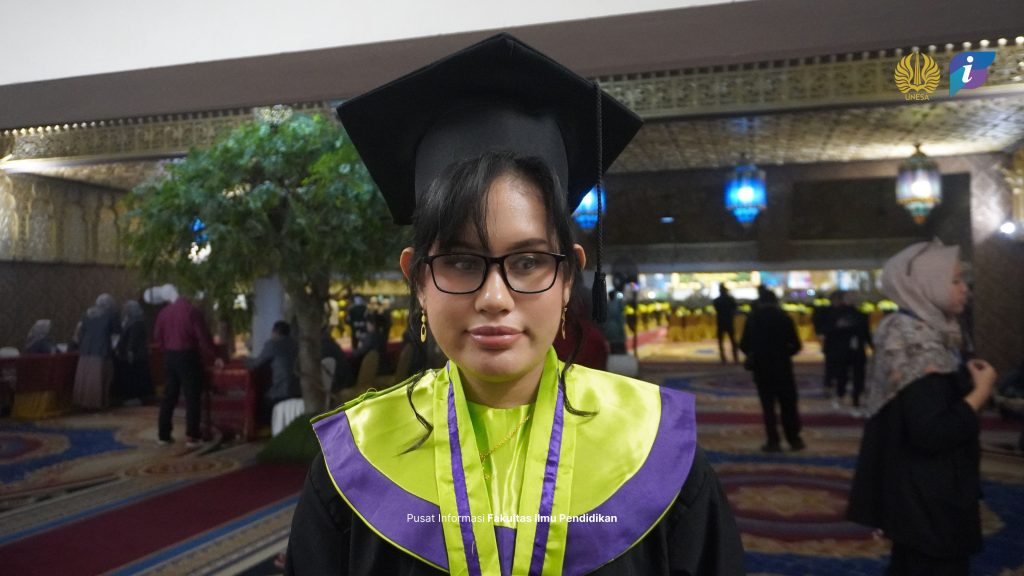 Fatin mengangkat skripsi berjudul “Pengembangan E-Worksheet Berbasis Komik (EWoMic) Materi Pecahan Kelas V SD.” Inovasi media pembelajaran ini dirancang untuk menyederhanakan materi pecahan melalui pendekatan visual dan naratif yang menarik bagi siswa. “Media ini dikemas dalam bentuk flipbook dan liveworksheet agar mudah diakses serta menarik minat belajar siswa,” jelasnya. Ia juga menekankan bahwa tujuan utamanya bukan semata meraih predikat terbaik, tetapi menjadi pembelajar sepanjang hayat. “Bagi saya, pendidikan adalah proses pembentukan diri secara utuh,” ujarnya.