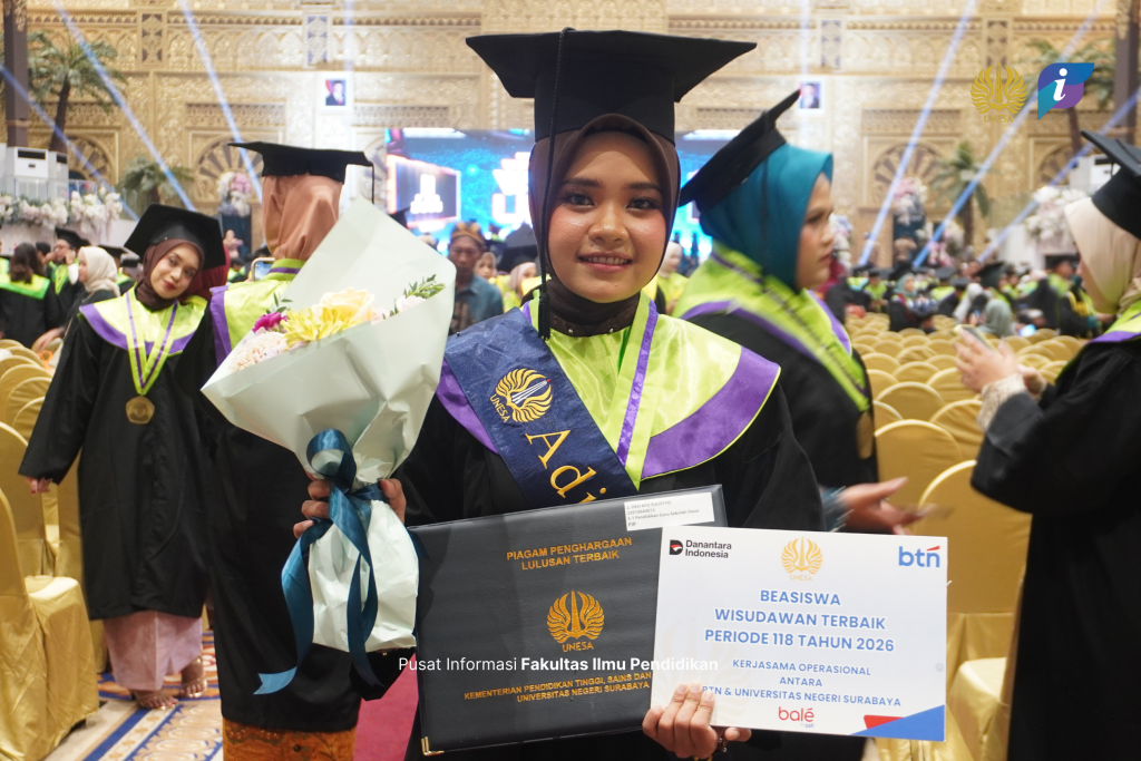 fip.unesa.ac.id, Surabaya — Universitas Negeri Surabaya (UNESA) menggelar Rapat Terbuka Wisuda UNESA Periode ke-118 untuk jenjang Sarjana Terapan, Sarjana, Magister, dan Doktor di Graha Unesa pada Rabu, 11 Februari 2026. Mengusung tema “Wisudawan UNESA Unggul, Adaptif, dan Inovatif Berdampak untuk Indonesia Emas 2045”, prosesi berlangsung khidmat.